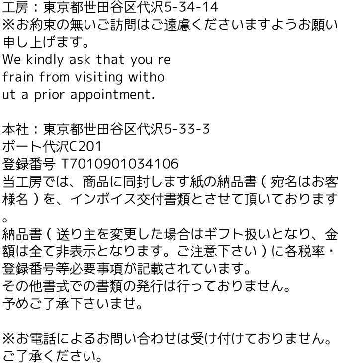 問合せにお答えしていない規約を承諾・ご理解頂けない場合ご注文なさらないでください!